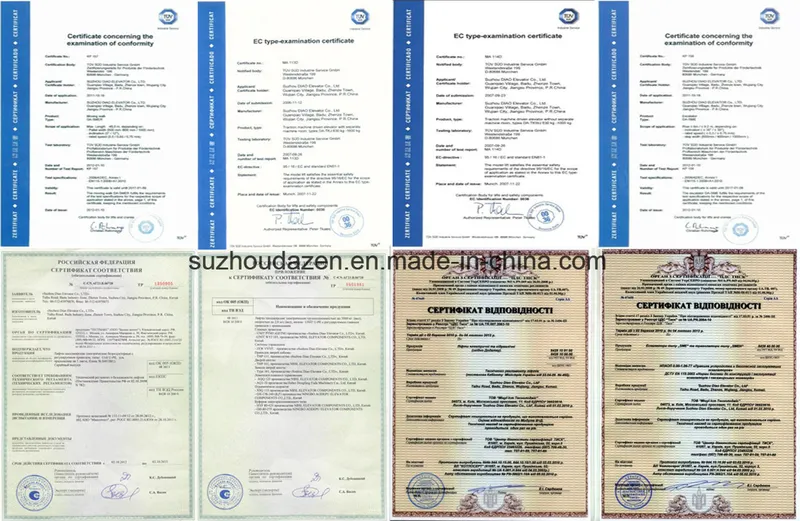Estamos cualificados con CE/EN81, EAC/CU-TR, KC y TUV Certificados. Estás lleno protegido.